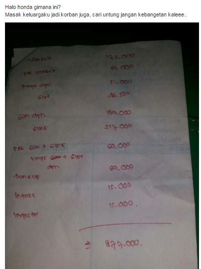 Biaya servis besar motor honda matic spacy fi 2013 om bro meski disini yang mtb ceritakan adalah motor spacy tapi untuk matic matic entry level lain seperti beat dan vario 110 bahkan motor bebek pun biayanya tidak akan berselisih jauh. Simak rangkaian artikel mengenai penyebab mobil turun mesin. Bayangkan jika ada komponen internal yang rusak dan dibiarkan. Namun semua itu bisa berantakan gara gara motor bermasalah.
